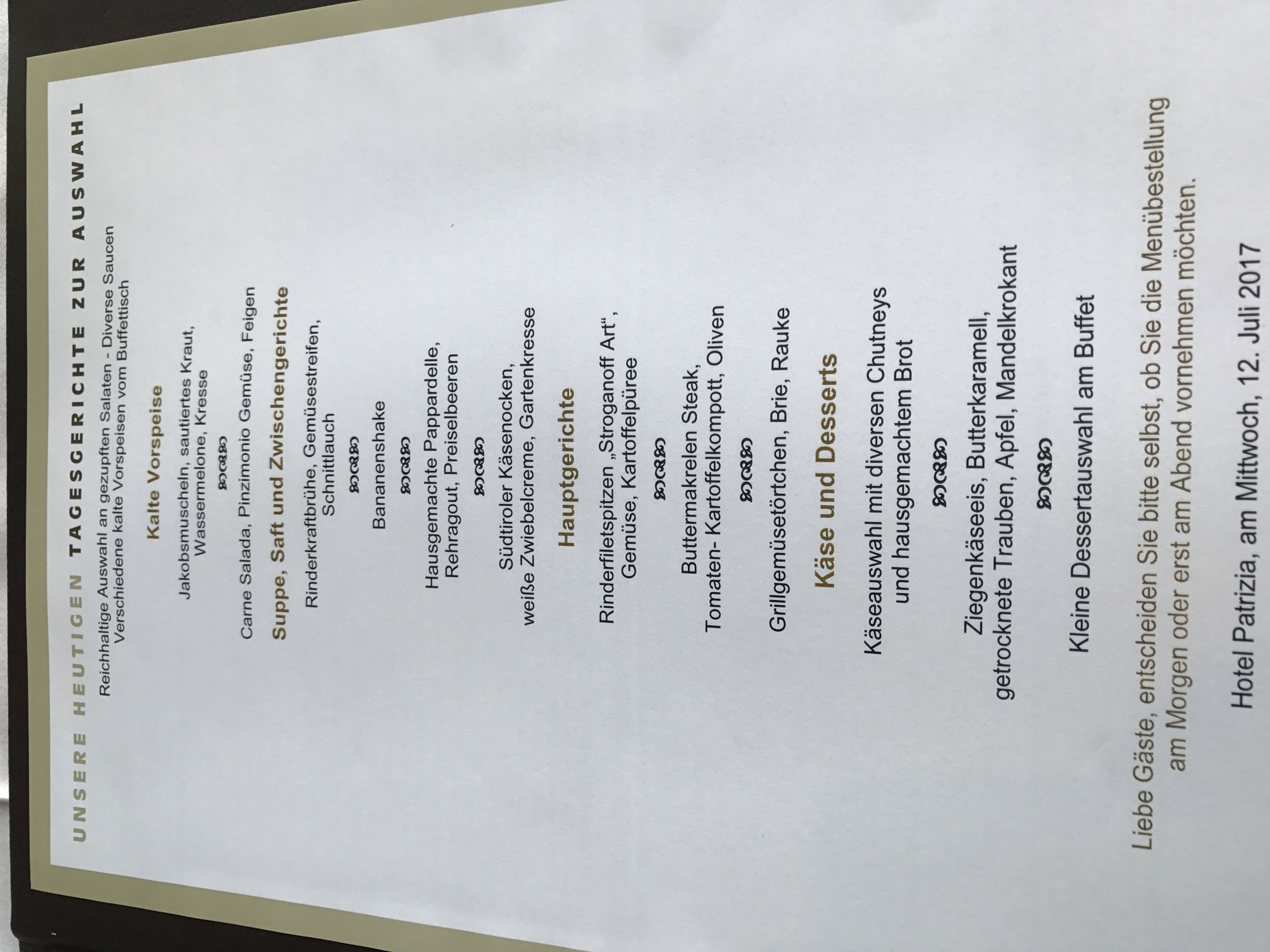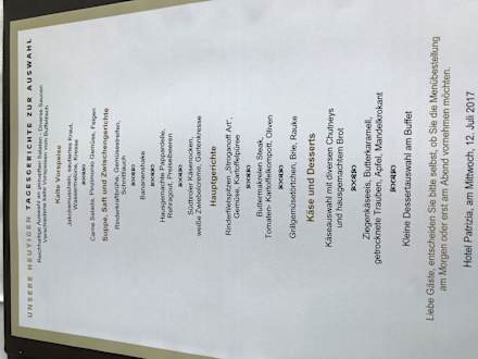 Auszug aus der Menükarte