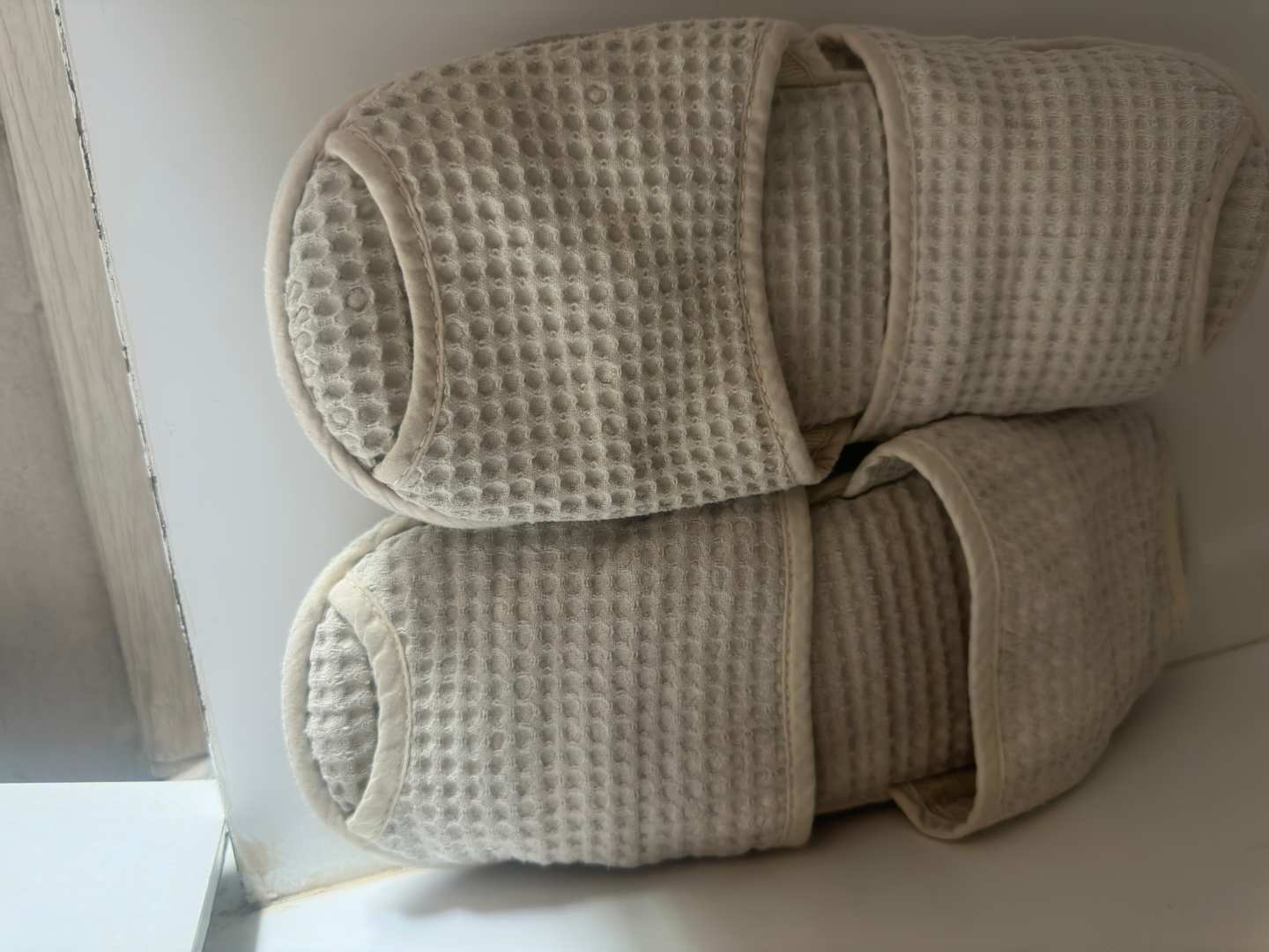 Getragene und vergilbte Slipper.