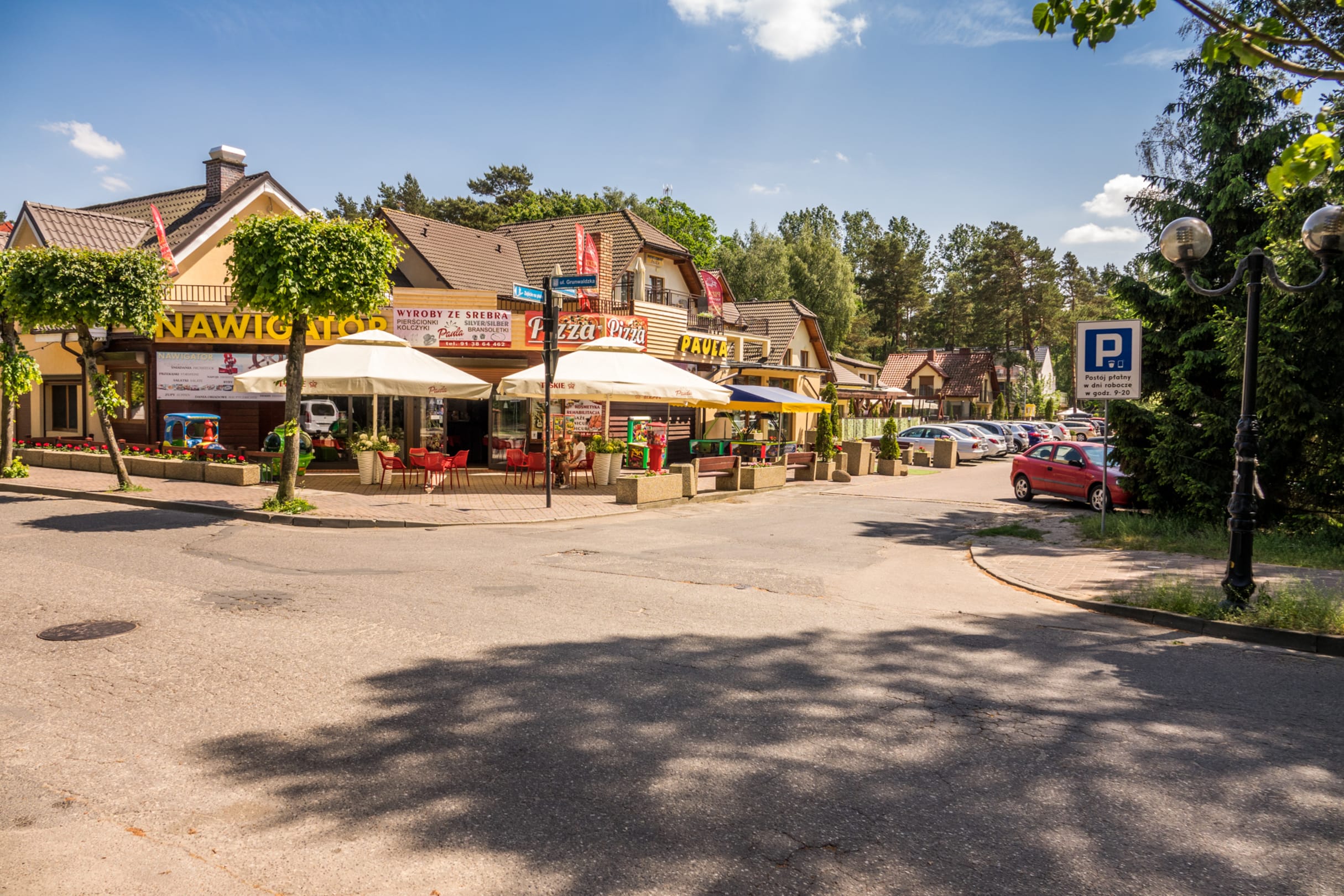 Außenansicht von der Grunwaldska aus, Hotelparkplatz in Nebenstraße links, gebührenpflichtiger Parkplatz rechts - in Rezeption nach günstiger Parkkarte fragen - kostet 50 € Kaution