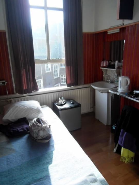 Blick in ein EinzelzimmerKlein, aber vollkommen ausreichend, wenn man eh nur was zum schlafen braucht und sonst keinen Wert auf Luxus legt.
