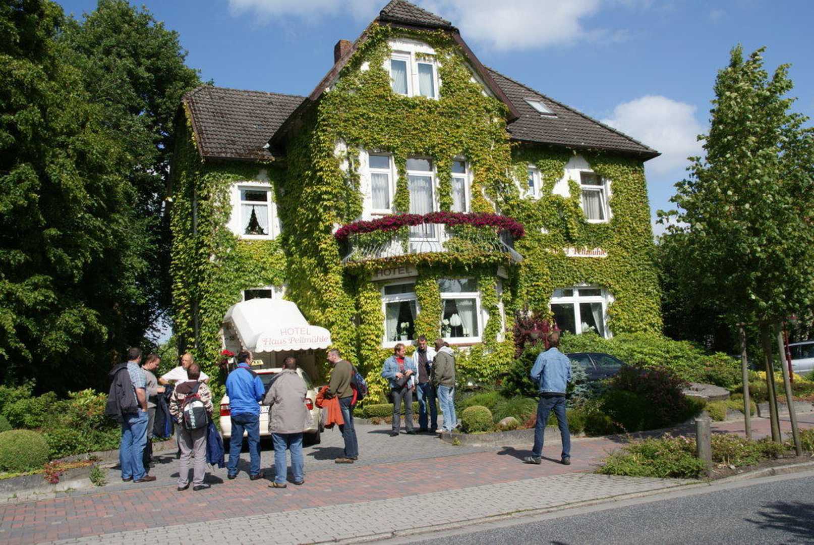 Das Hotel Pellmühle von der Straße aus.