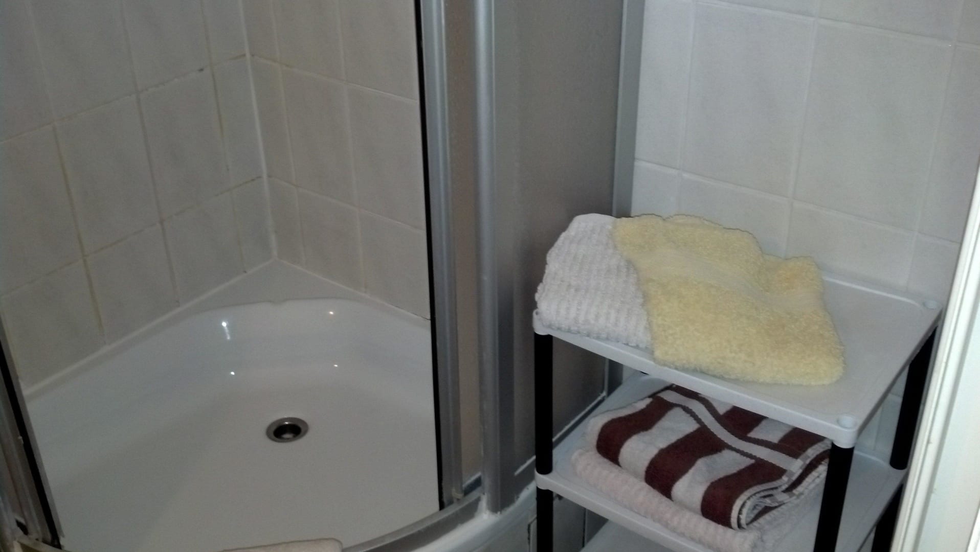 Dusche und HandtüchervorratDie Handtücher waren zur Reserve, weiter Handtücher hingen noch neben der Dusche.