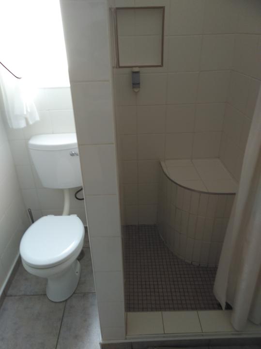 Bad im Einzelzimmer mit gemauertem Sitz in der Dusche