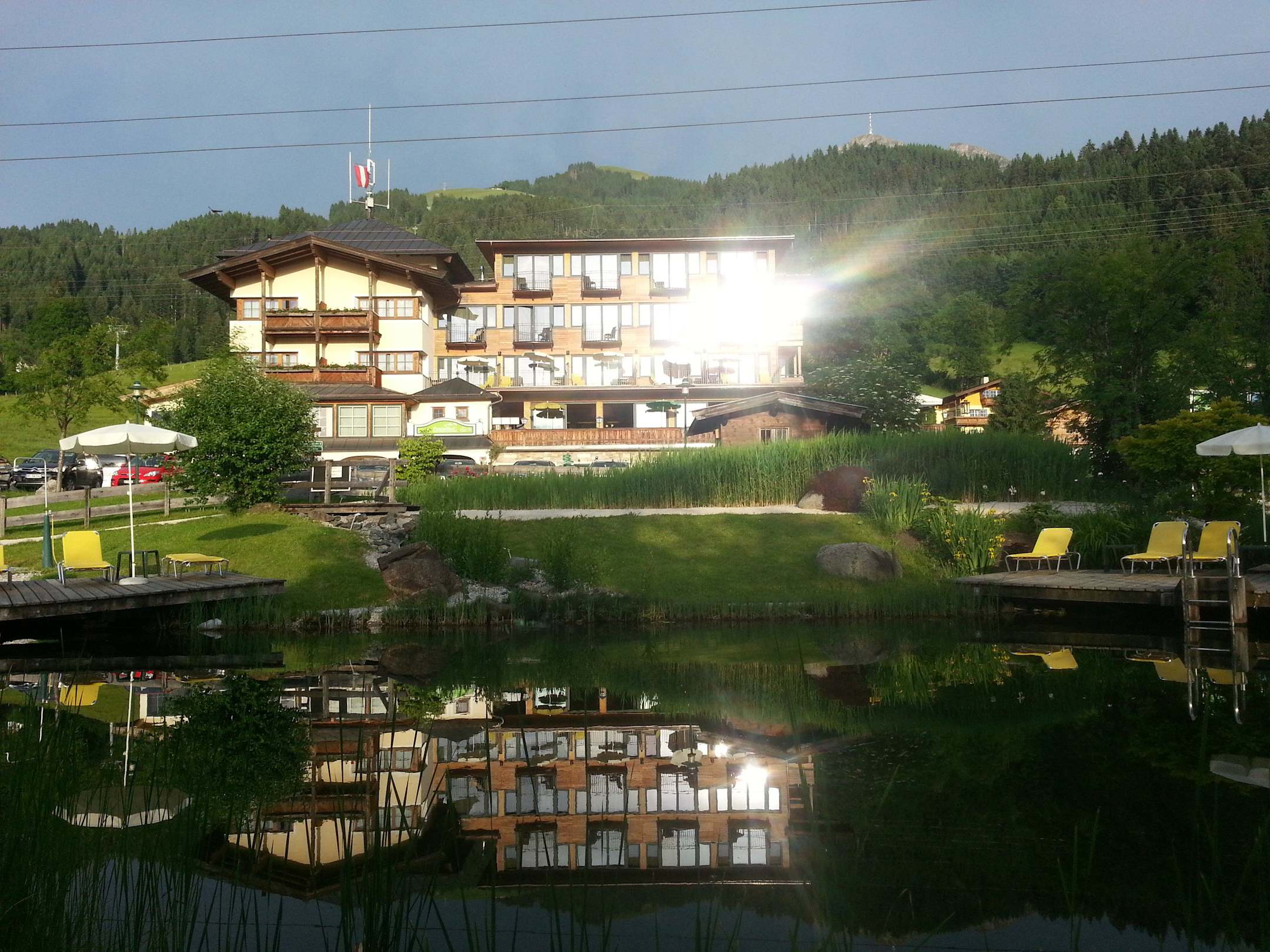 Blick vom Schwimmteich Richtung Hotel