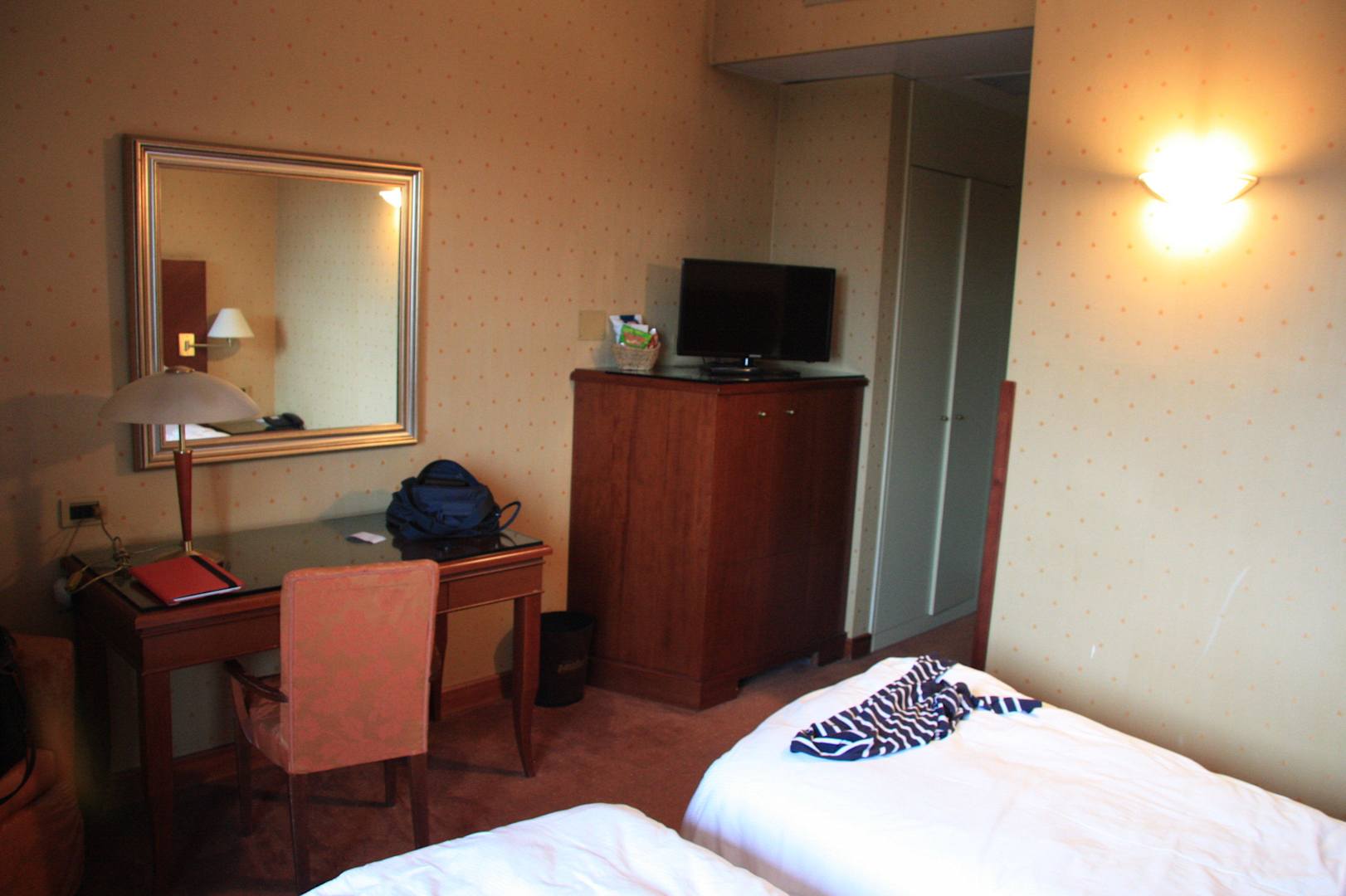 Blick auf Schreibtisch und Minibar