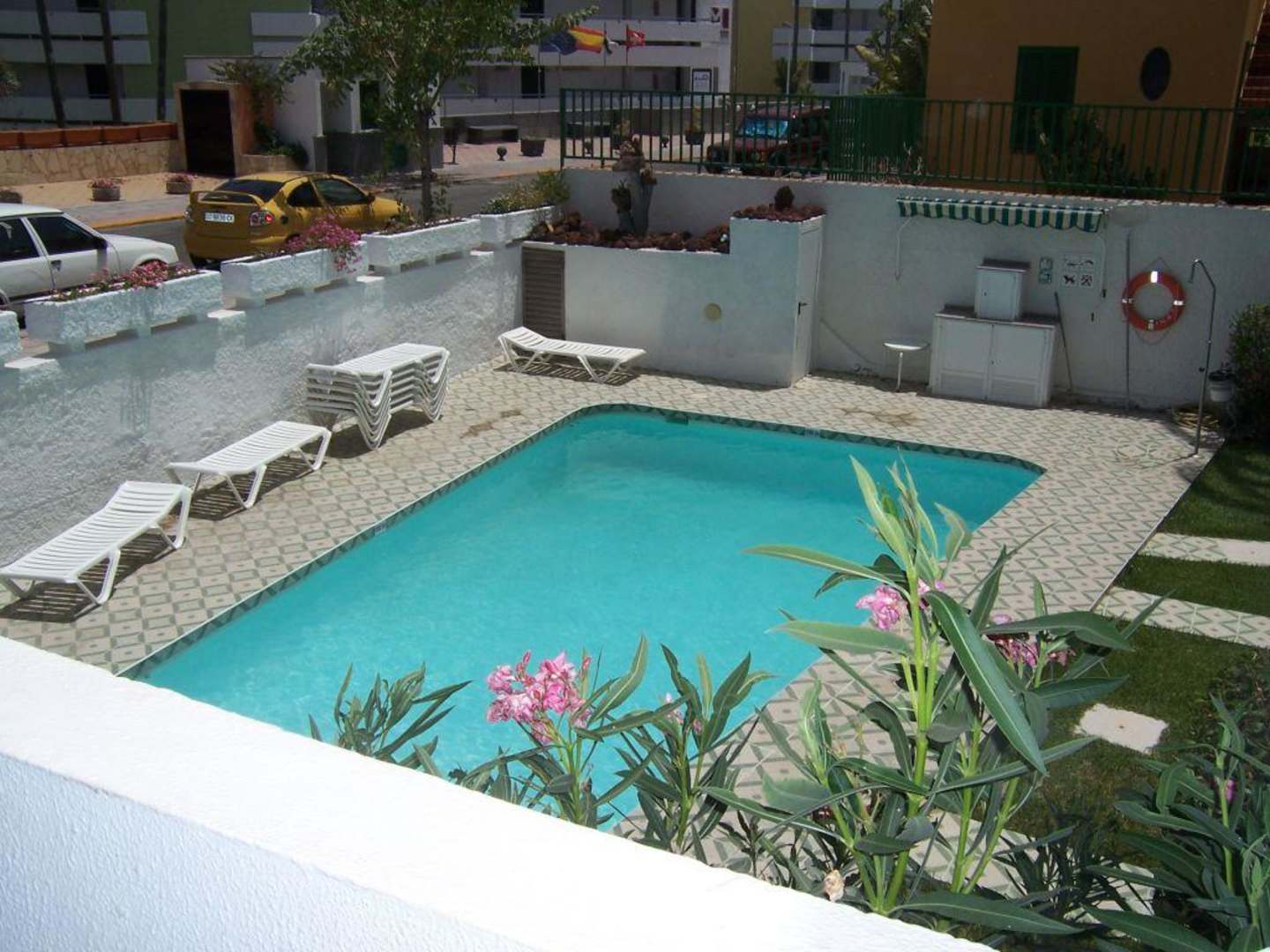 Blick vom Balkon auf den Pool