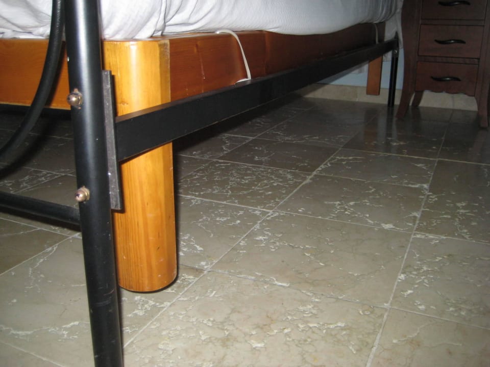 Hier wurde ein früheres Holzdoppelbett einfach auf ein Metallgestell montiert, die Holzbeine "schweben" i.d. Luft und Kabelbinder halten das ganze zusammen. 5 Sterne!