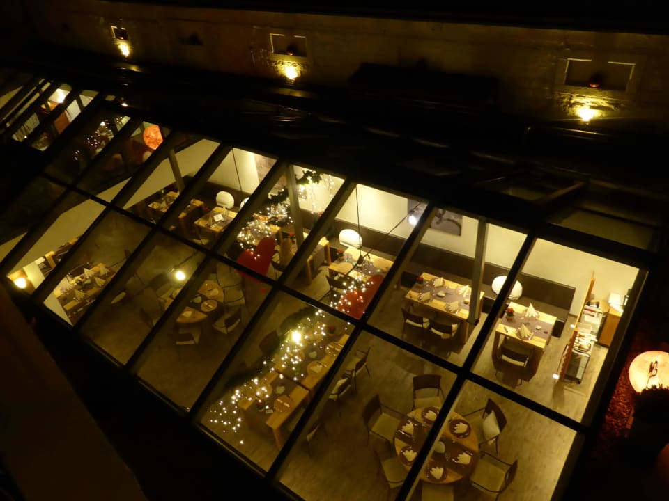 Ausblick vom Zimmer ins Restaurant