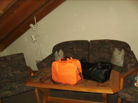 Wohnbereich mit Tisch und Sofa