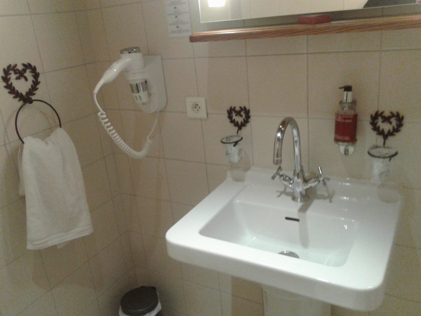 Waschplatz mit Haartrockner und Seife