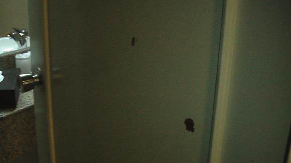 Die Badezimmertür hatte auch schon einige Schrammen. ( Farbe )