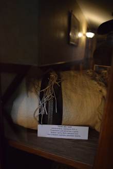 Ausstellungsstück einer alten Kutte in einer Vitrine im HoteAusstellungsstück einer alten Kutte in einer Vitrine im Hotelflur...