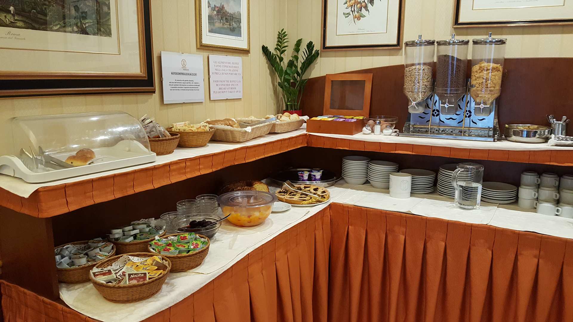 Rechts ist nur Geschirr, deshalb ist das Frühstück sehr übersichtlich.