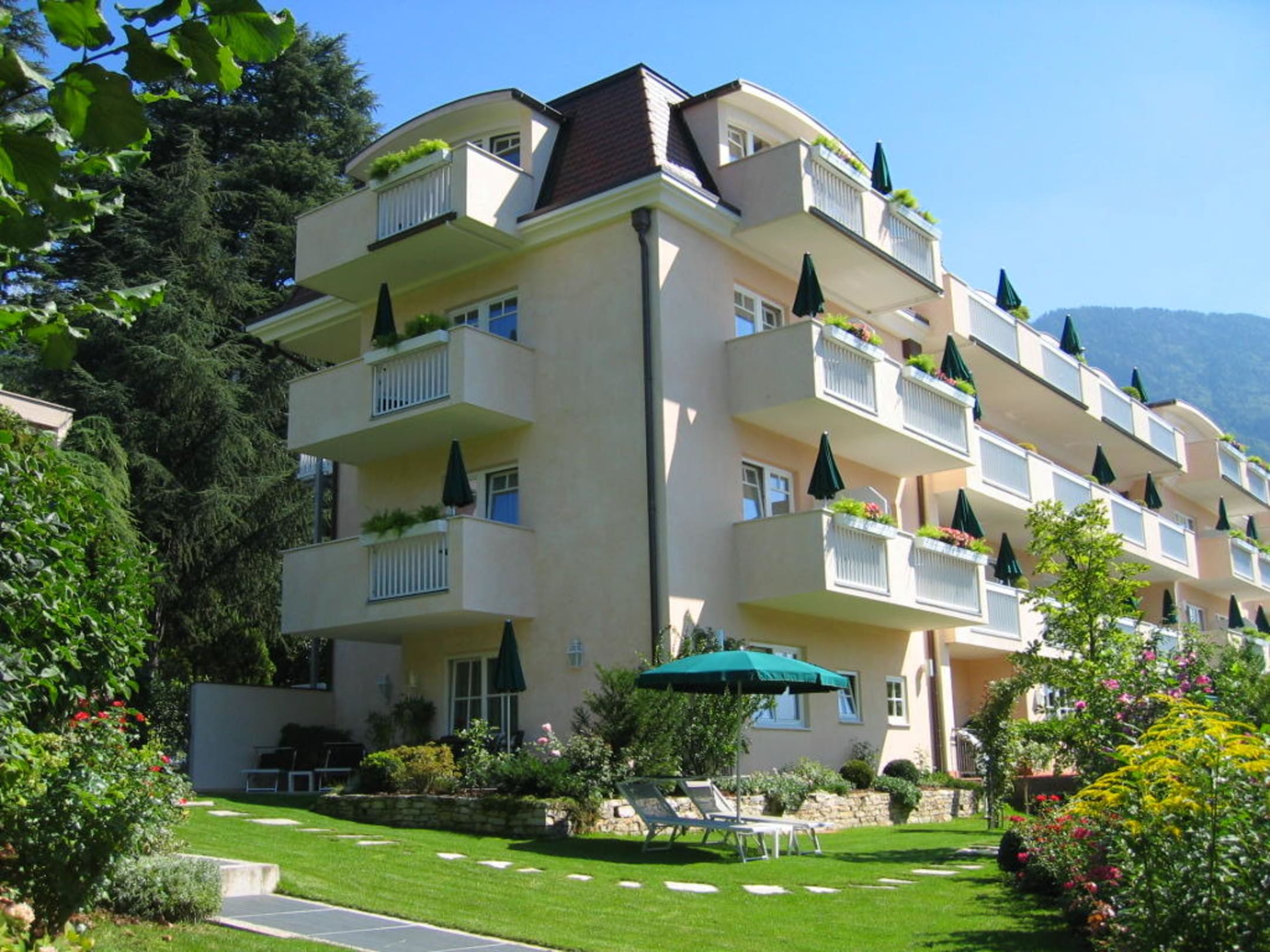 Hotel vom Garten aus gesehen