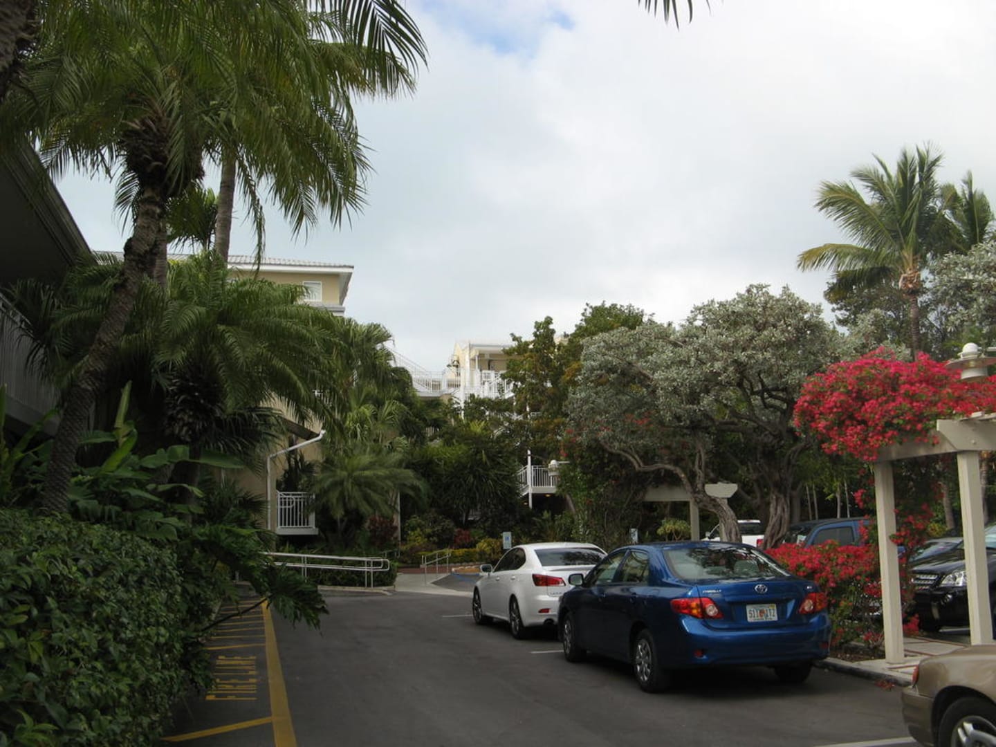 Pier House Resort in Key WestPier House Resort in Key West: Blick vom Parkplatz auf das schön begrünte Hotel