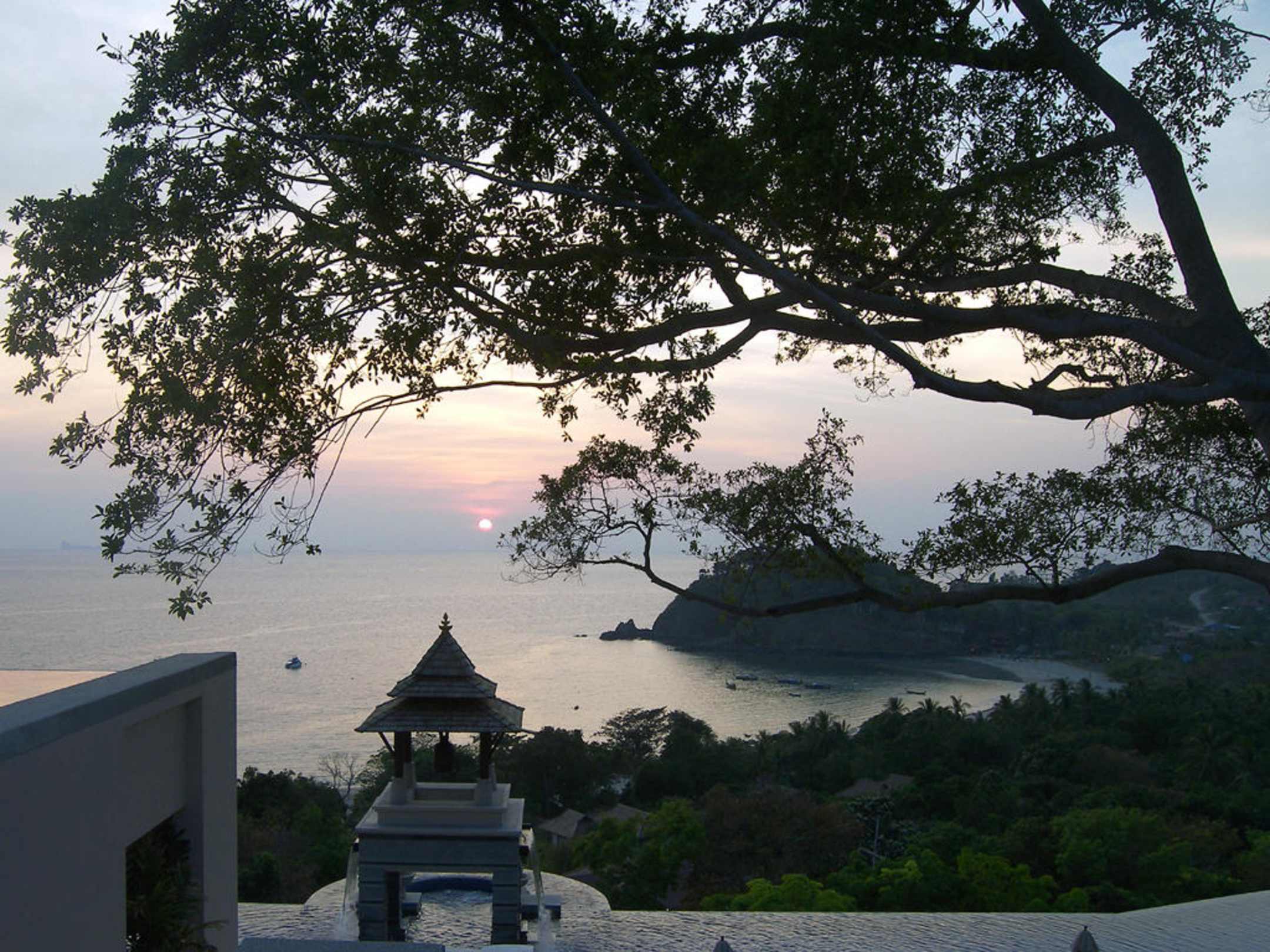 Blick vom Terrassen-Restaurant des Pimalai auf die Bay