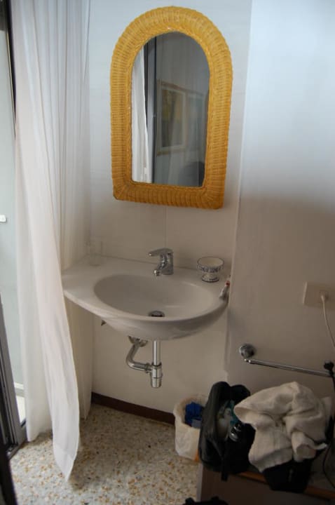 Waschbecken im Zimmer 224wegen Platzmangel aus dem Bad ins Schlafzimmer versetzt. Aber auch so kann man sich im Bad nicht drehen.