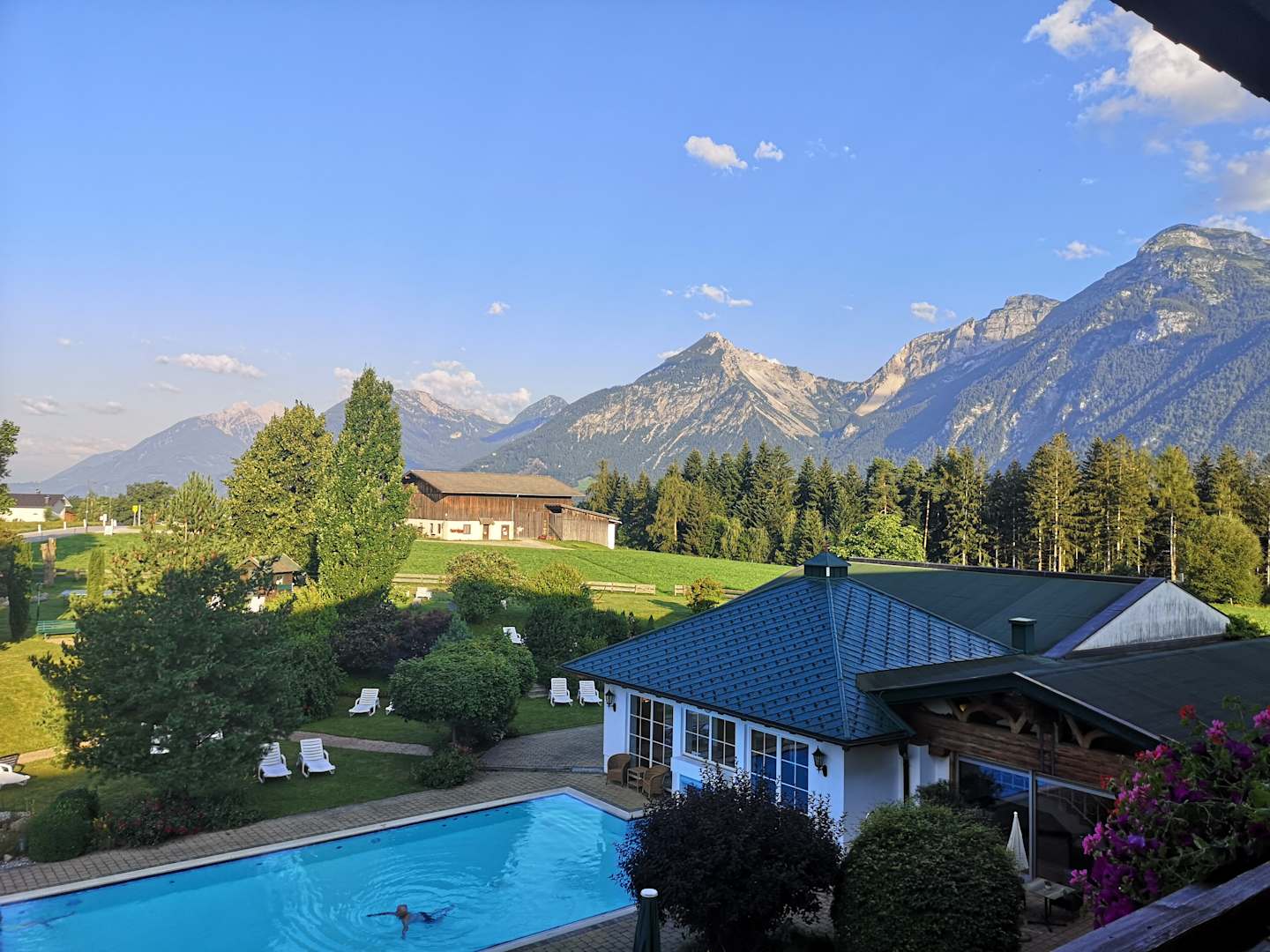 Blick vom Balkon zum Rofangebirge