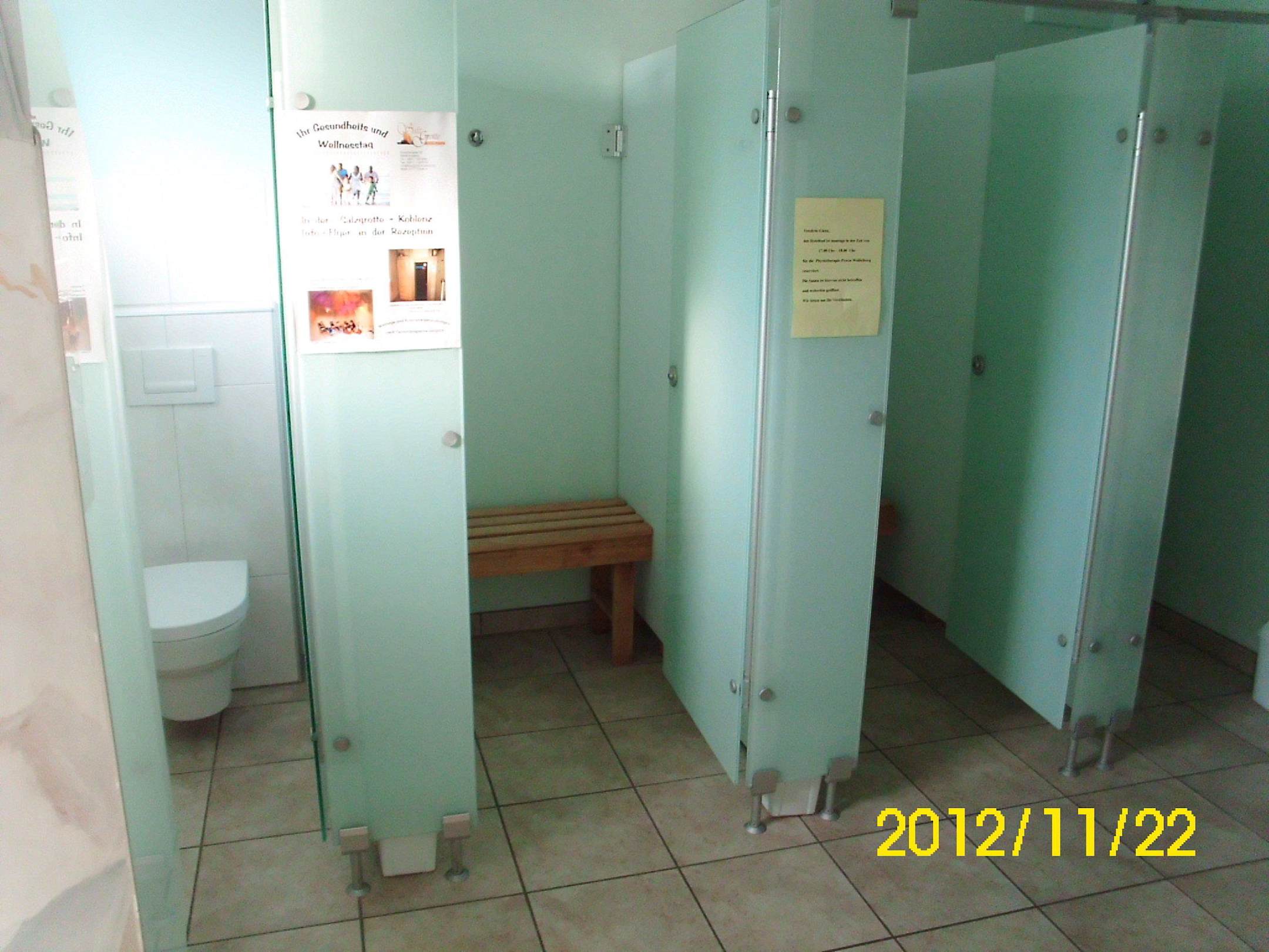 die Umkleidekabinen und Toiletten im Poolbereich.