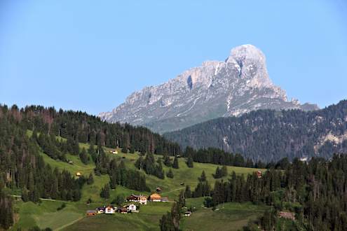 Blick vom Hotelbalkon auf den Peitlerkofel