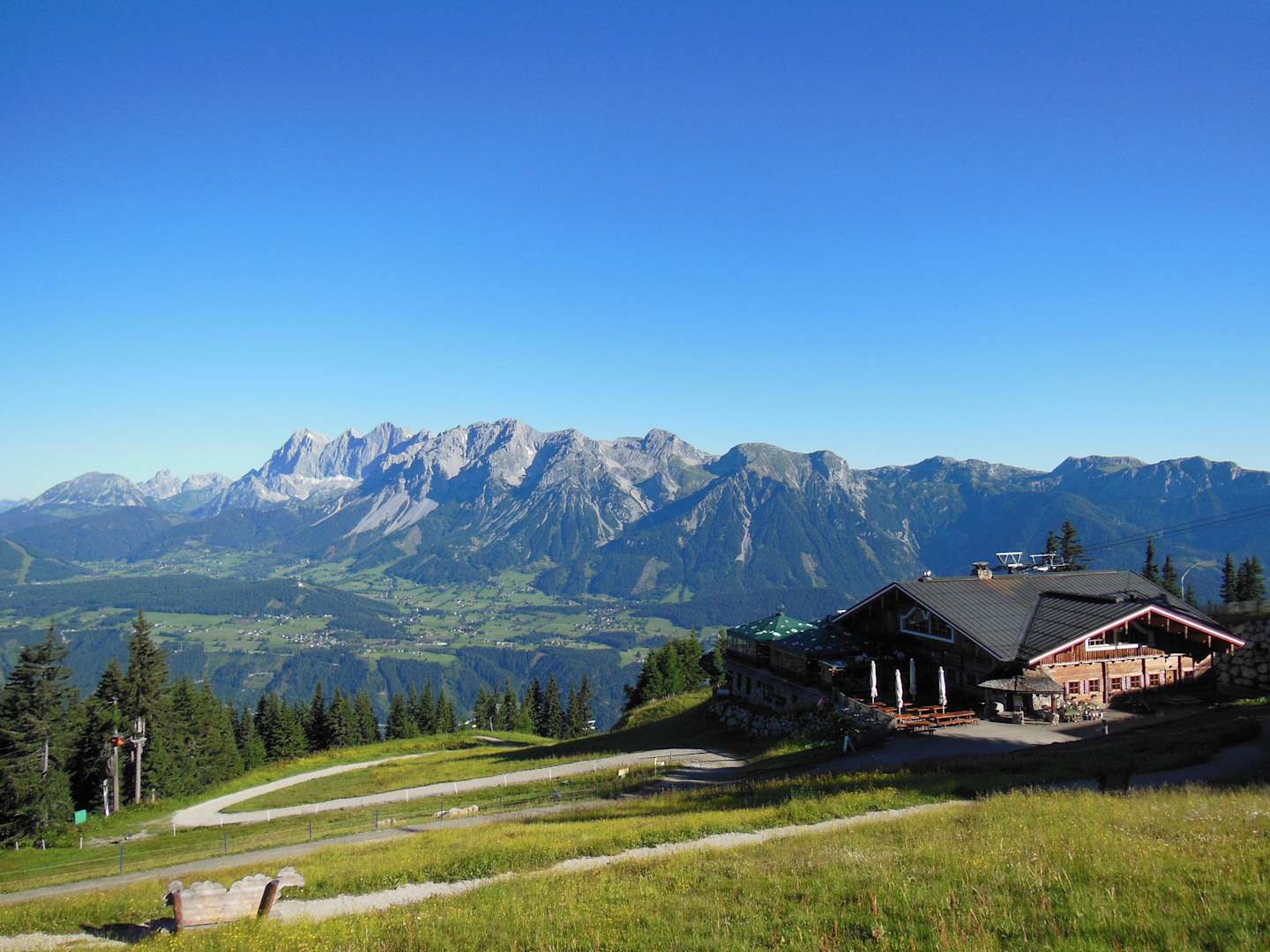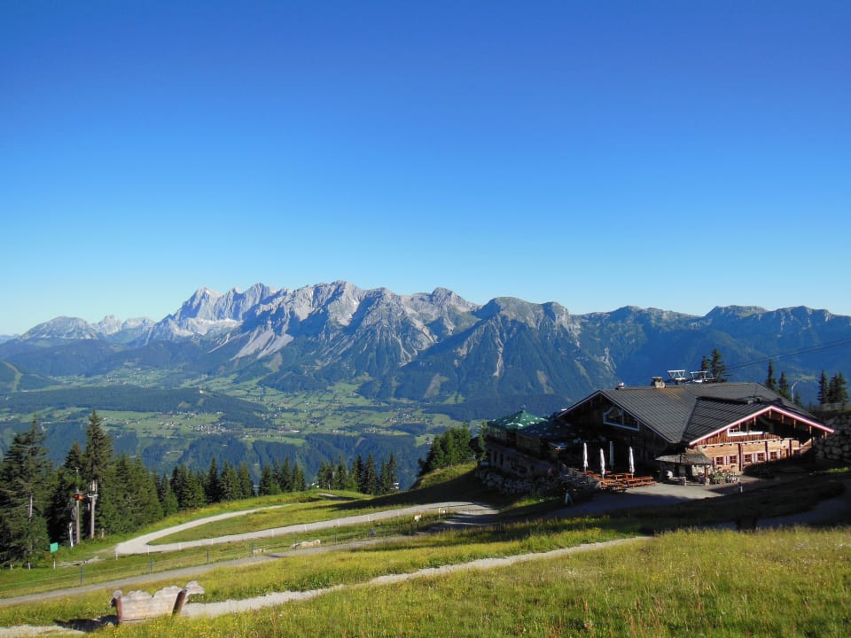 Ausblick vom Planaihof auf das Dachsteinmassiv
