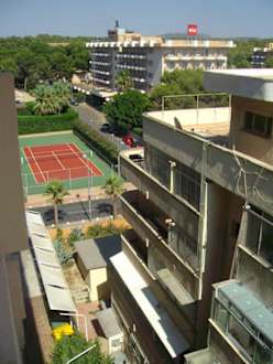 zum Hotel gehören auch Tennisplätze, wovon hier einer zu sehen ist