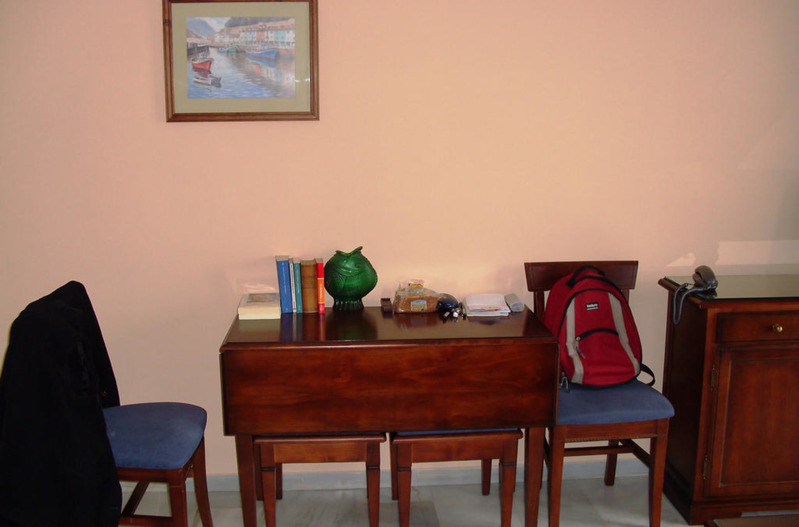 Ein ausklappbarer Esstisch, auch als Schreibtisch zu benutzen
