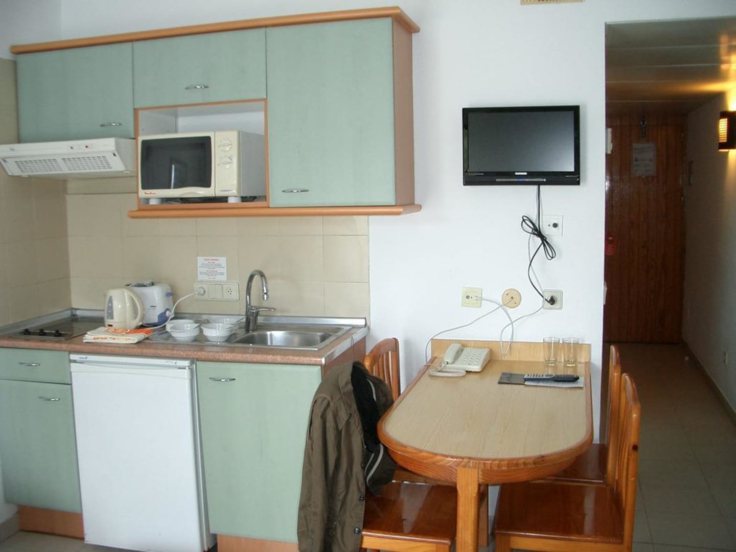 Das kleine schwarze Ding an der Wand ist der Fernseher!