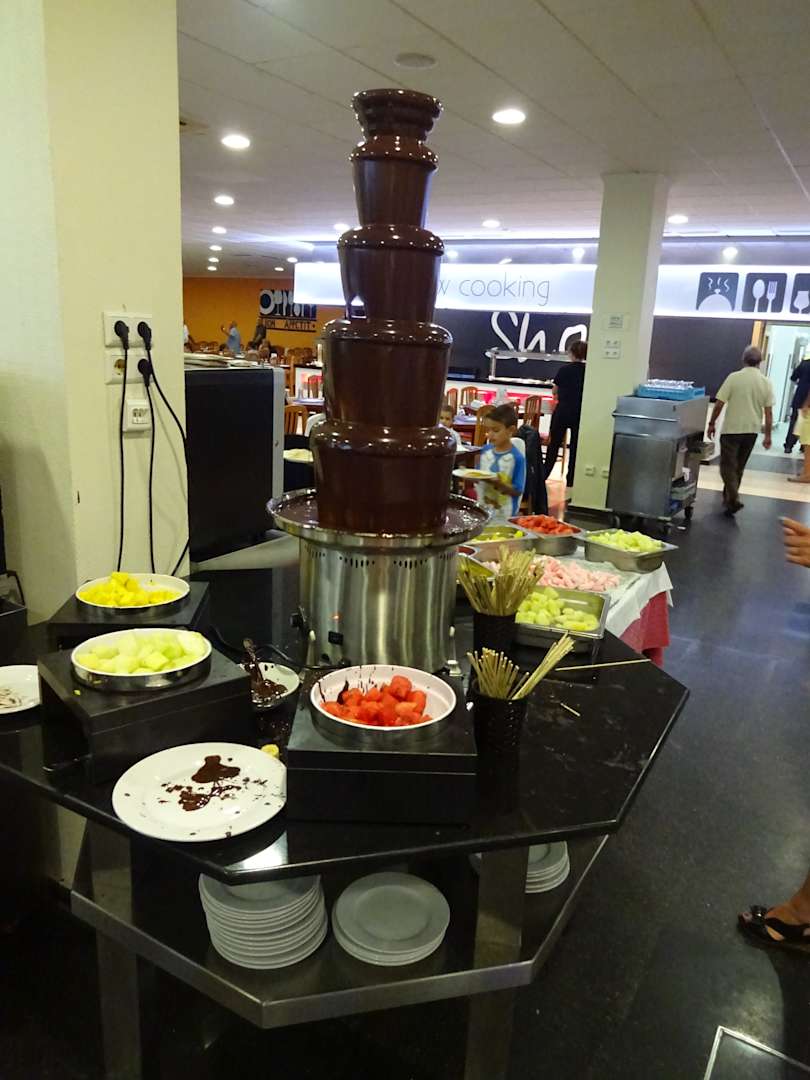 RestaurantAn einem Abend gab es Schoko-Fontaine als Desert - schwarze Schokolade mit frischen Ananas, Melone und Wassermelone - sehr lecker!