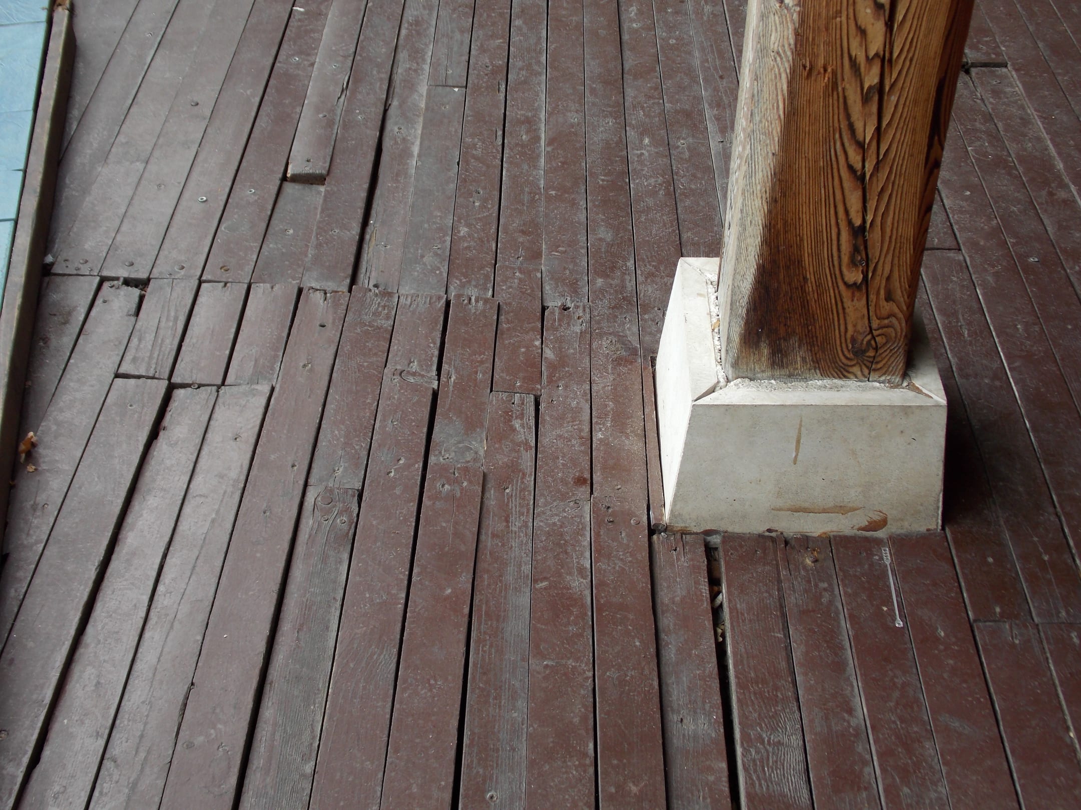Defekte Dielung in der Aussenbar, locker gesplittert oder es fehlten Stücke.