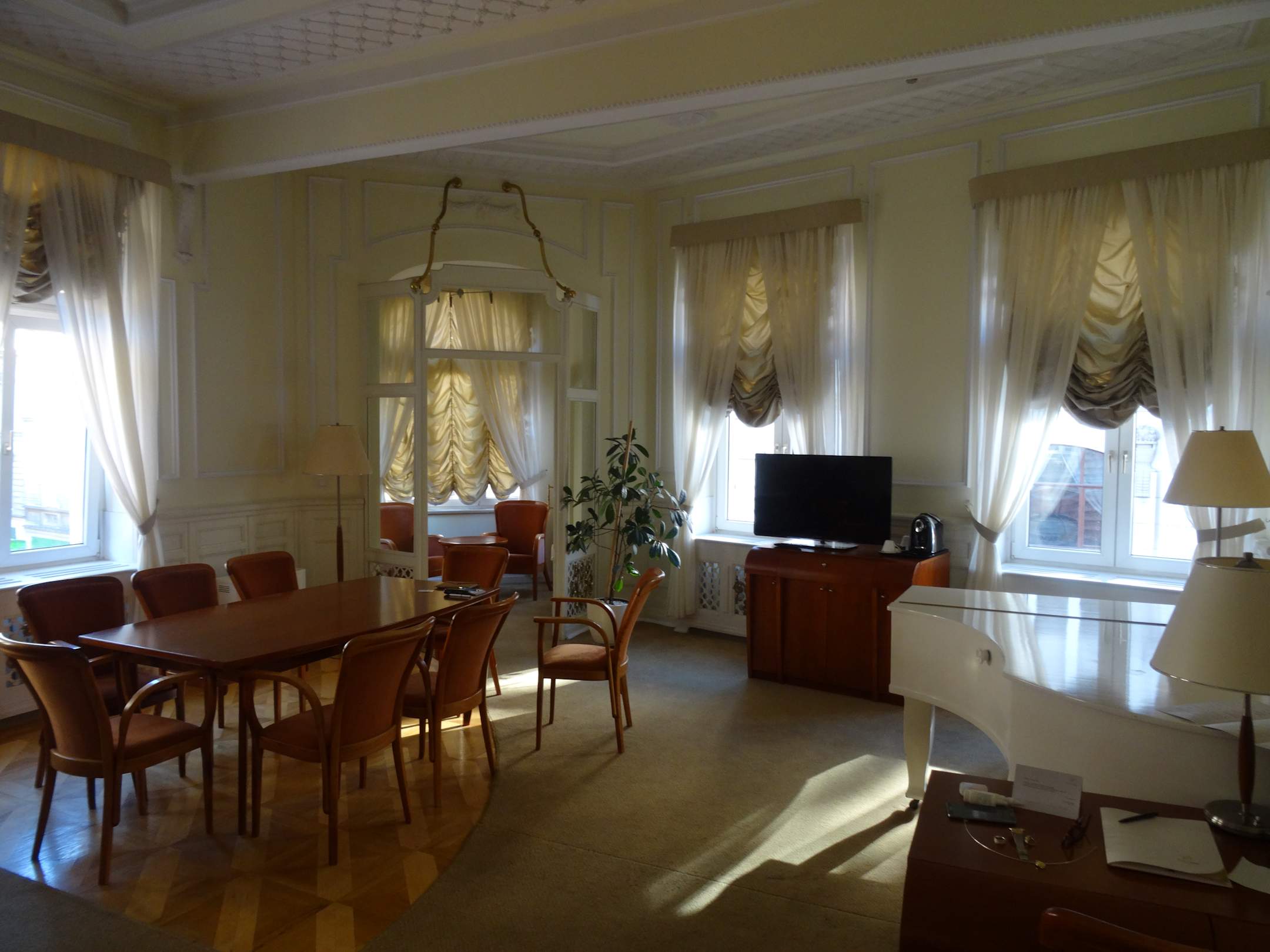 Grosses Zimmer, blick zum Erker, Flügel