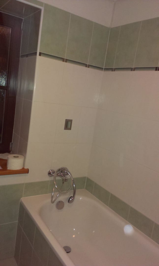 Dusche ohne DuschvorhangSchnelles Duschen ist hier nicht angesagt. Entweder baden in der Wanne oder das Badezimmer überschwemmen. Einen Duschvorhang oder ähnliches gibt es hier nicht. Das sind keine 4 Sterne.