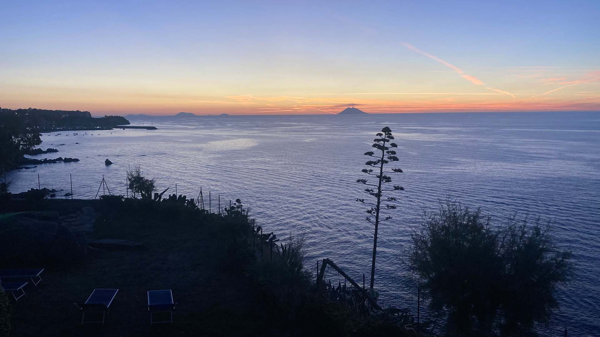 Abendstimmung Links - Tropea, in der Mitte der Stromboli