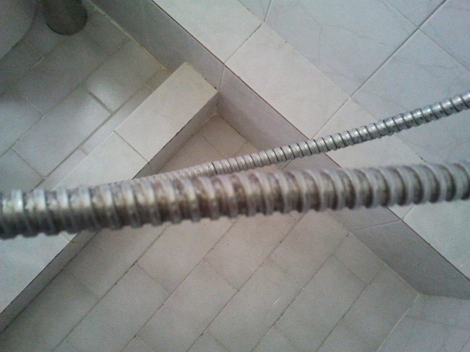 Duschen auf eigene GefahrWer sich schon ins Badezimmer getraut hat, der ist schon recht Dreck-resistent. Da schockt auch der stark verkeimte und stetig tropfende Duschschlauch nur noch periphär. Vorallem, wenn ein "frisches Lüftchen" durchs Bad zirkuliert -siehe anderes Bild