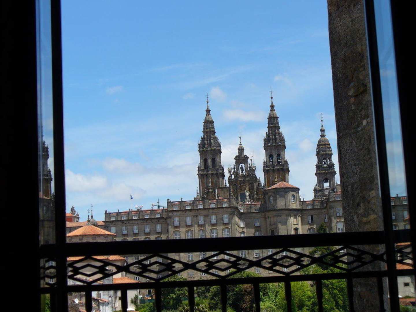 Blick aus dem Hotelzimmer auf die Kathedrale von Santiago.