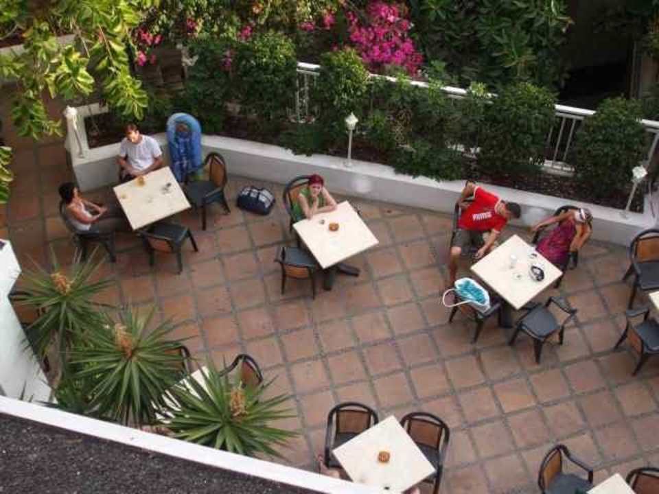 Der Blick vom Zimmer aus auf die Terrasse