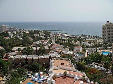 Panorama-Aussicht von Hotel Ponderosa auf Playa de las Americas.