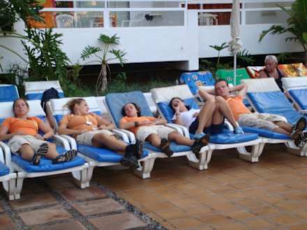 Sonja, Jenny, Ele, Momo und Frank nach der Poolparty