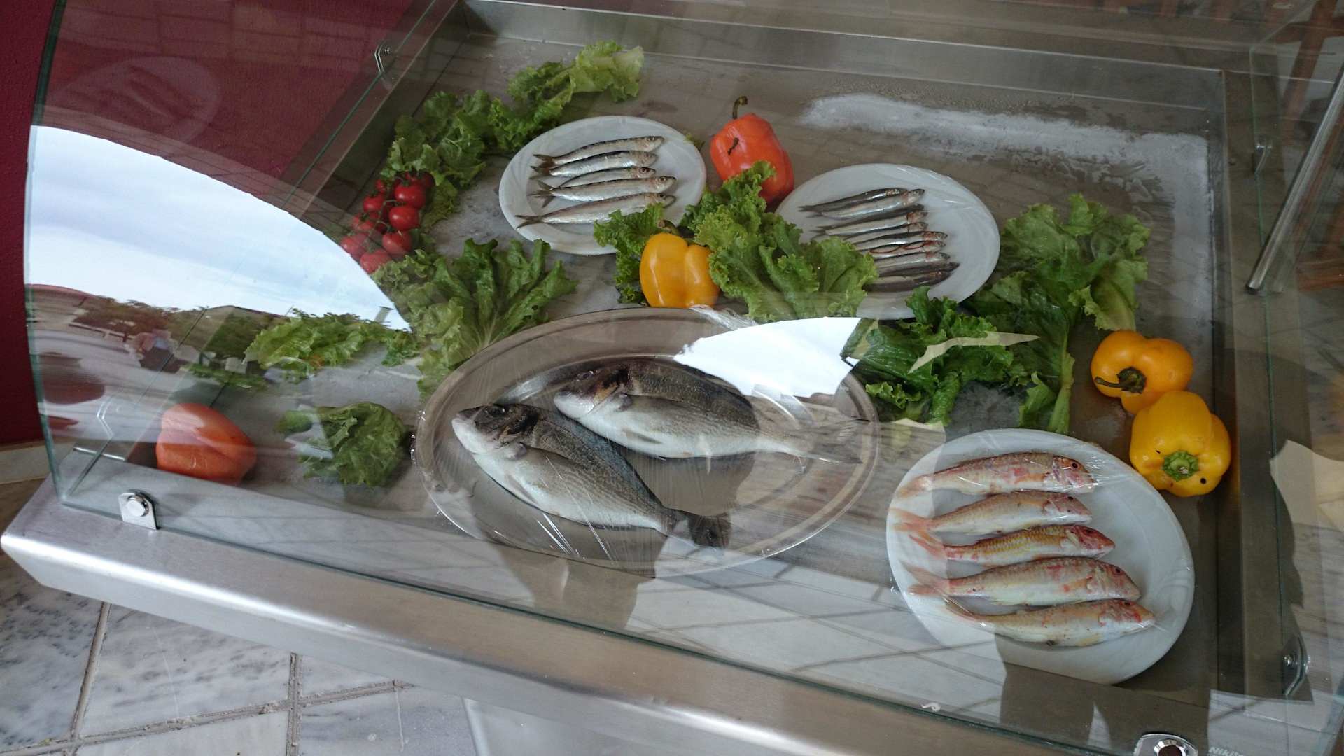 Frischer Fisch in der Taverne am Pool