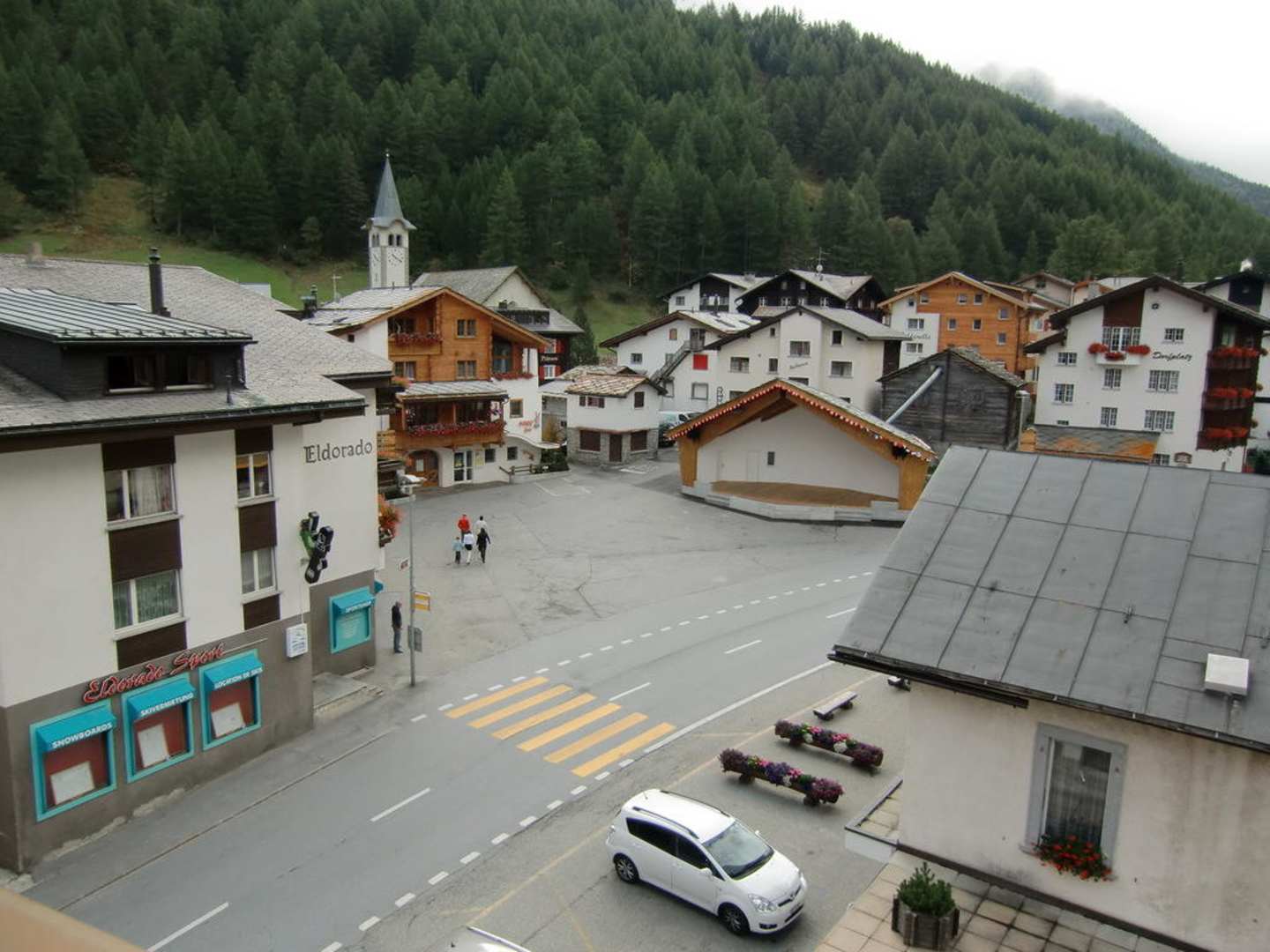 Blick auf den DorfplatzBlick von unserem Balkon im Hotel Portjengrat auf den Dorfplatz mit neu erbautem Pavillon , z.B. für Platzkonzerte