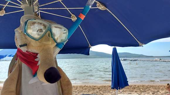 StrandEigener Strand mit Liegen. Sand: wie im Sandkasten - mega. Sehr flacher langgezogener Einstieg ins Meer und klares Wasser!