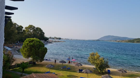 Ausblick vom Hotel auf den Strand in Richtung Hafen