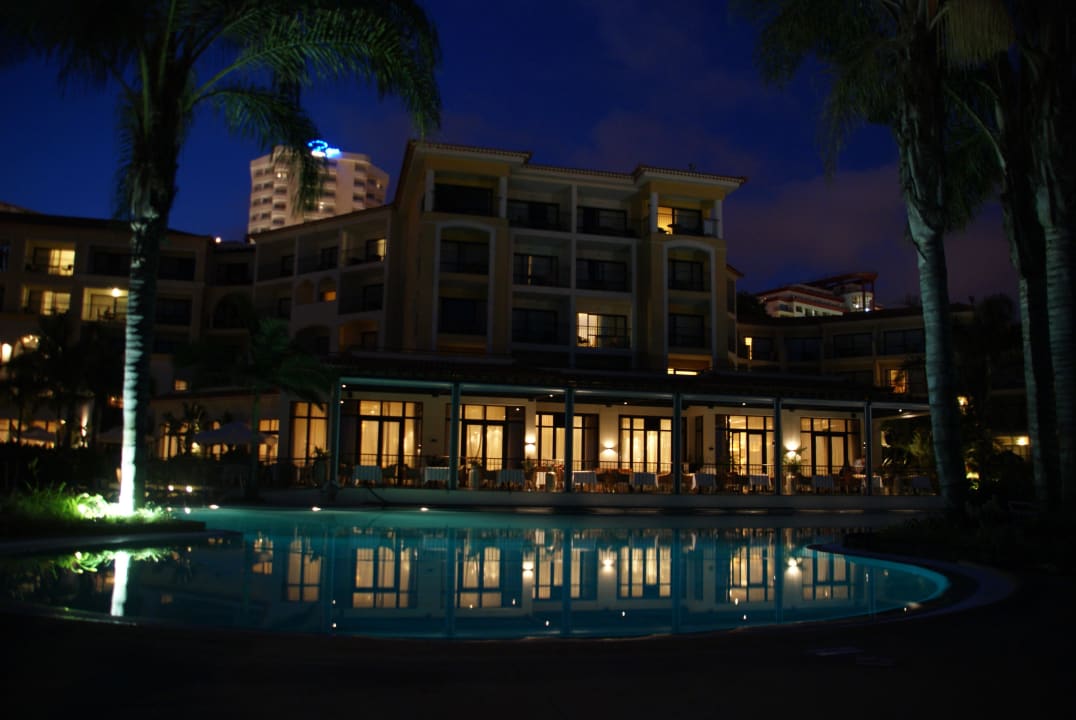 Pool und Hotel bei Nacht