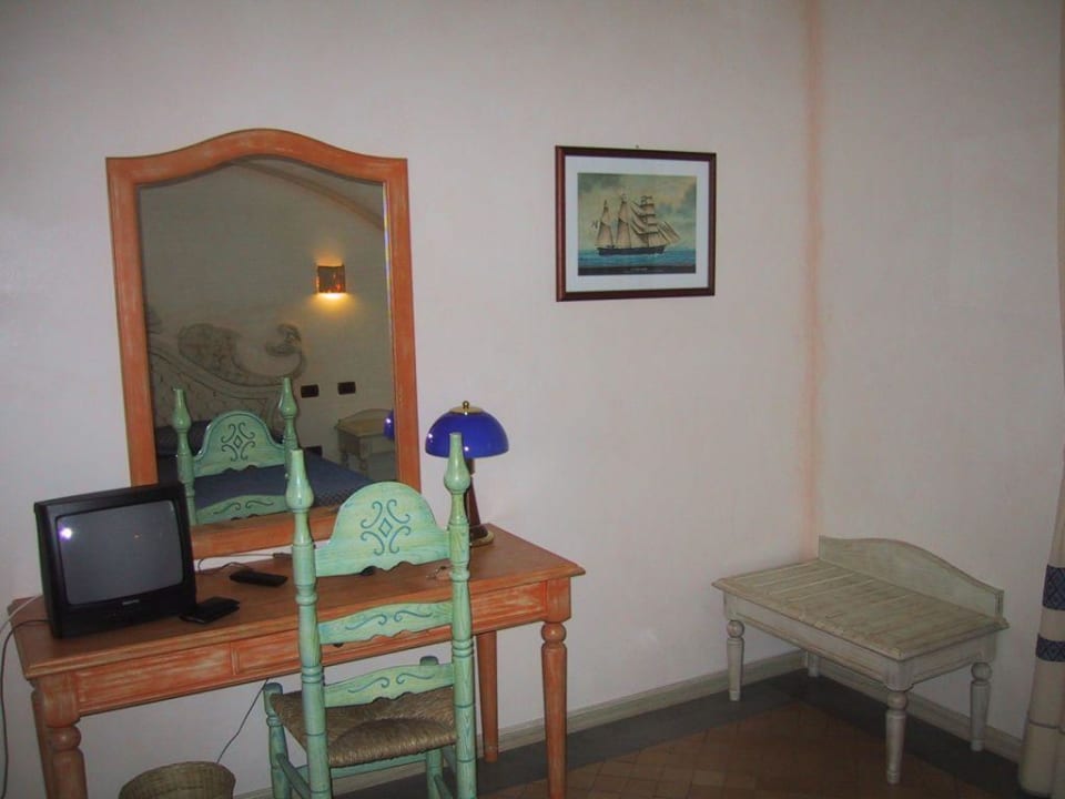 Schreibtisch und kleiner Fernseher