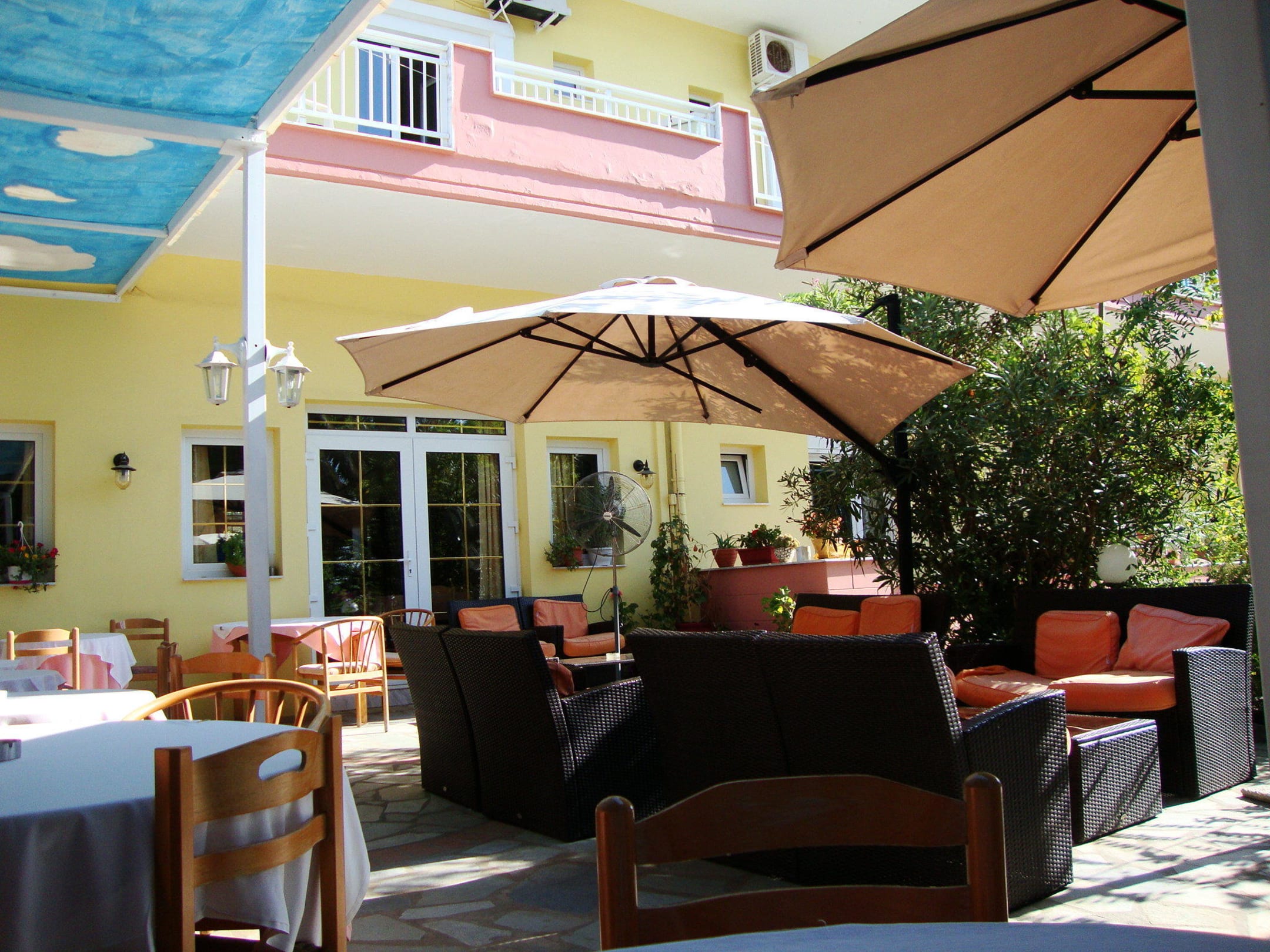 Gemütliche Sitzecken am Hotel