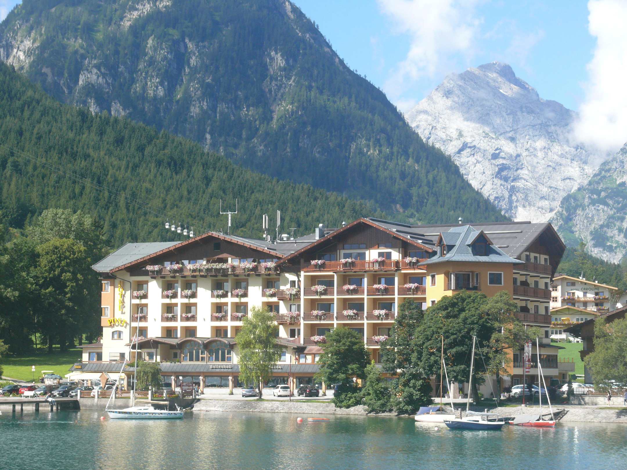 Das Foto kommt zwar 1,5 Jahre zu spät, kann sich aber sehen lassen. Es könnte fast ein Werbefoto des Hauses sein, ich habe es aber im Juli/August 2012 bei einer Schiffstour auf dem Achensee aufgenommen.
