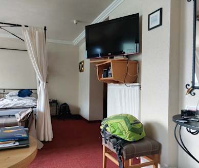 einfachste Ausstattung , Fernseher viel zu hoch