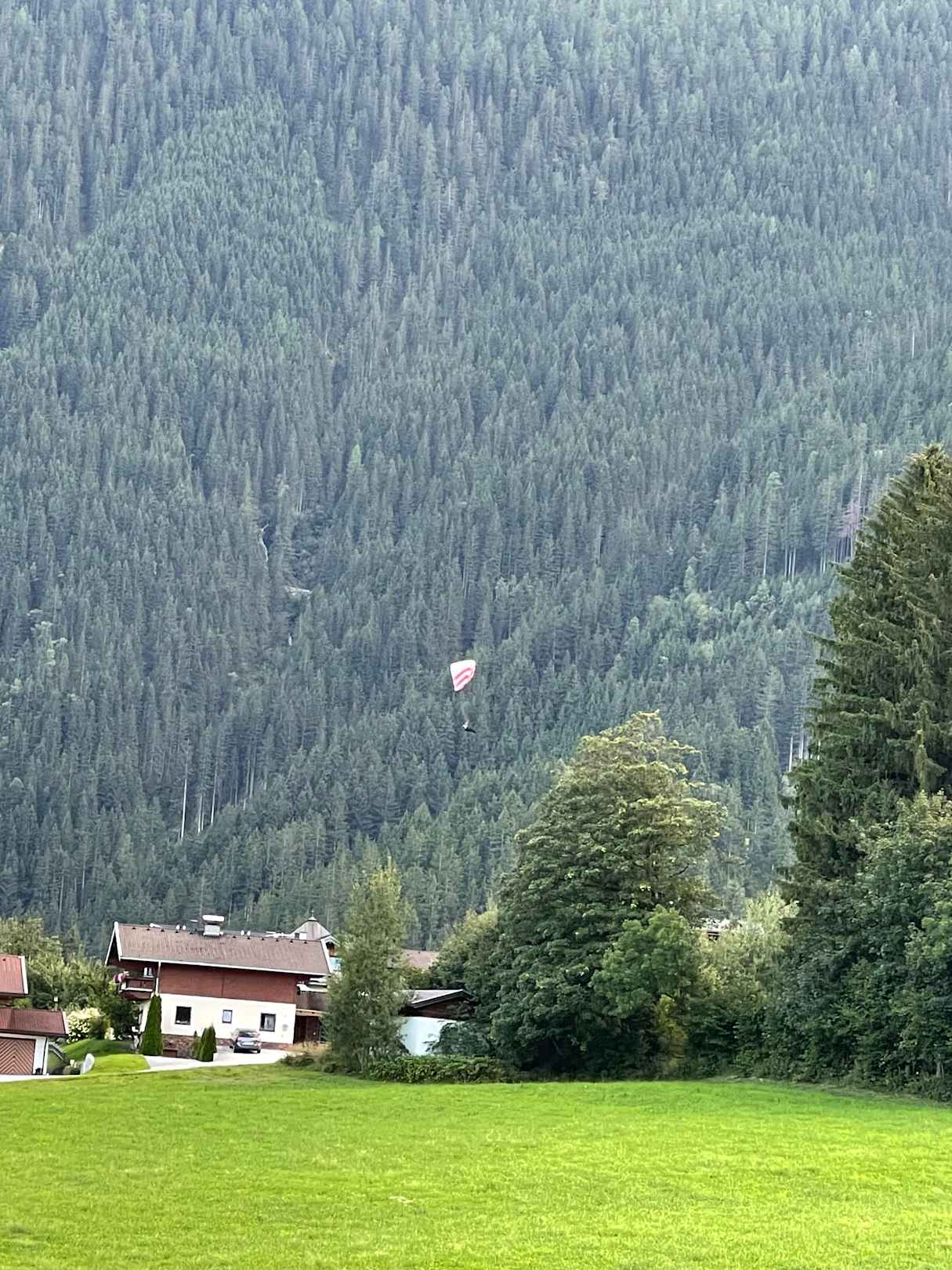 Ein Paragleiter landet nicht weit vom Balkon