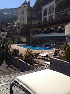Blick vom Liegestuhl auf den Pool