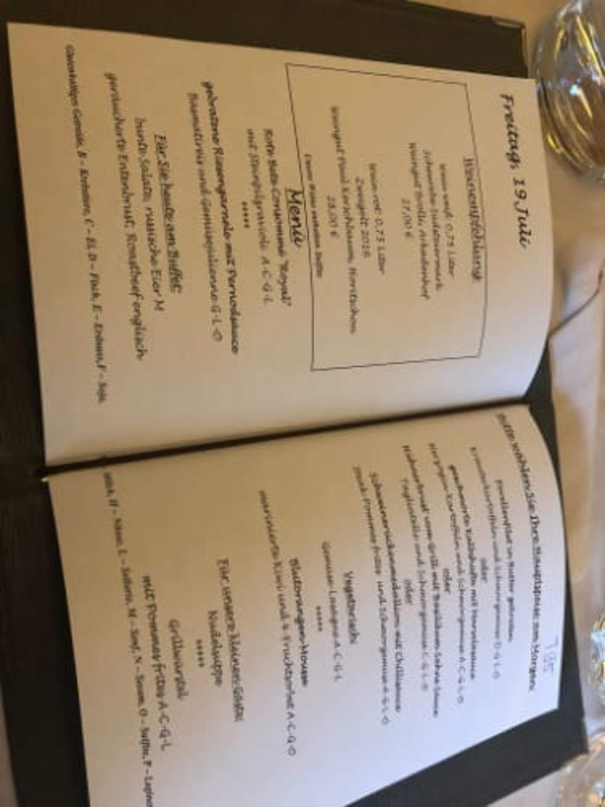 Speisekarte für den Abend